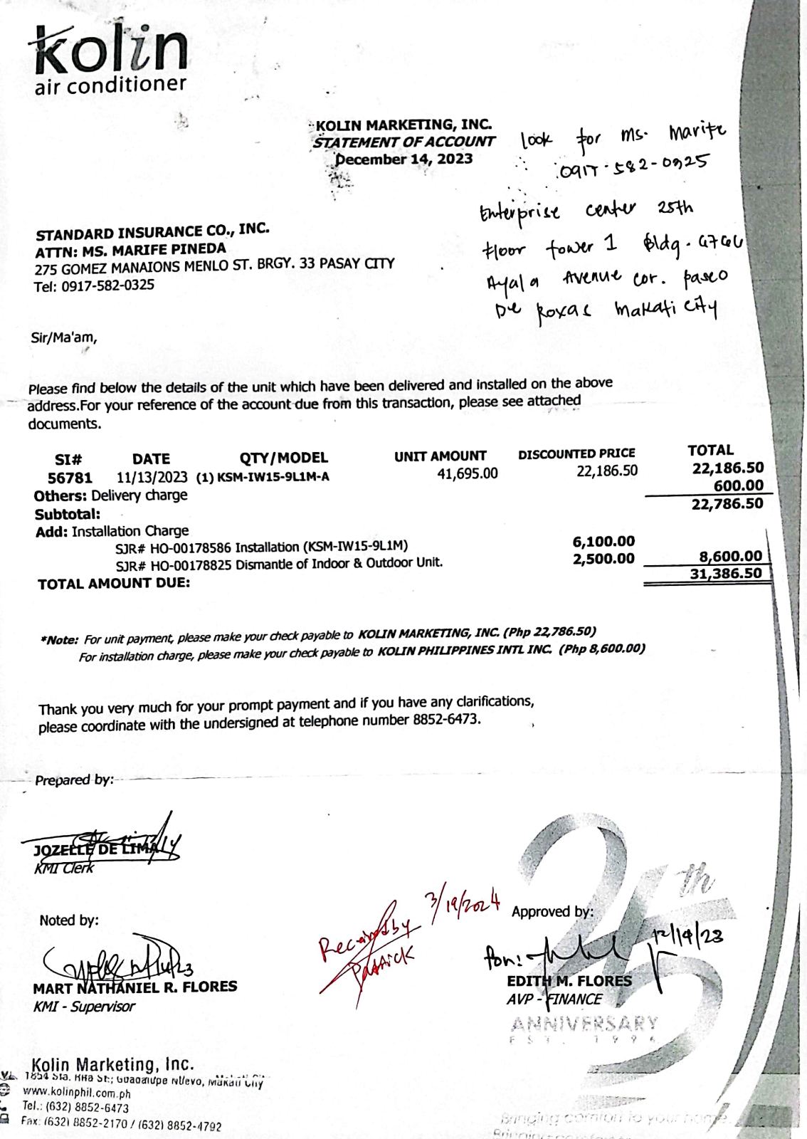 6/24/2024 10:40 AM 228545 STANDARD INSURANCE CO., INC. -BILLING (1).jpg