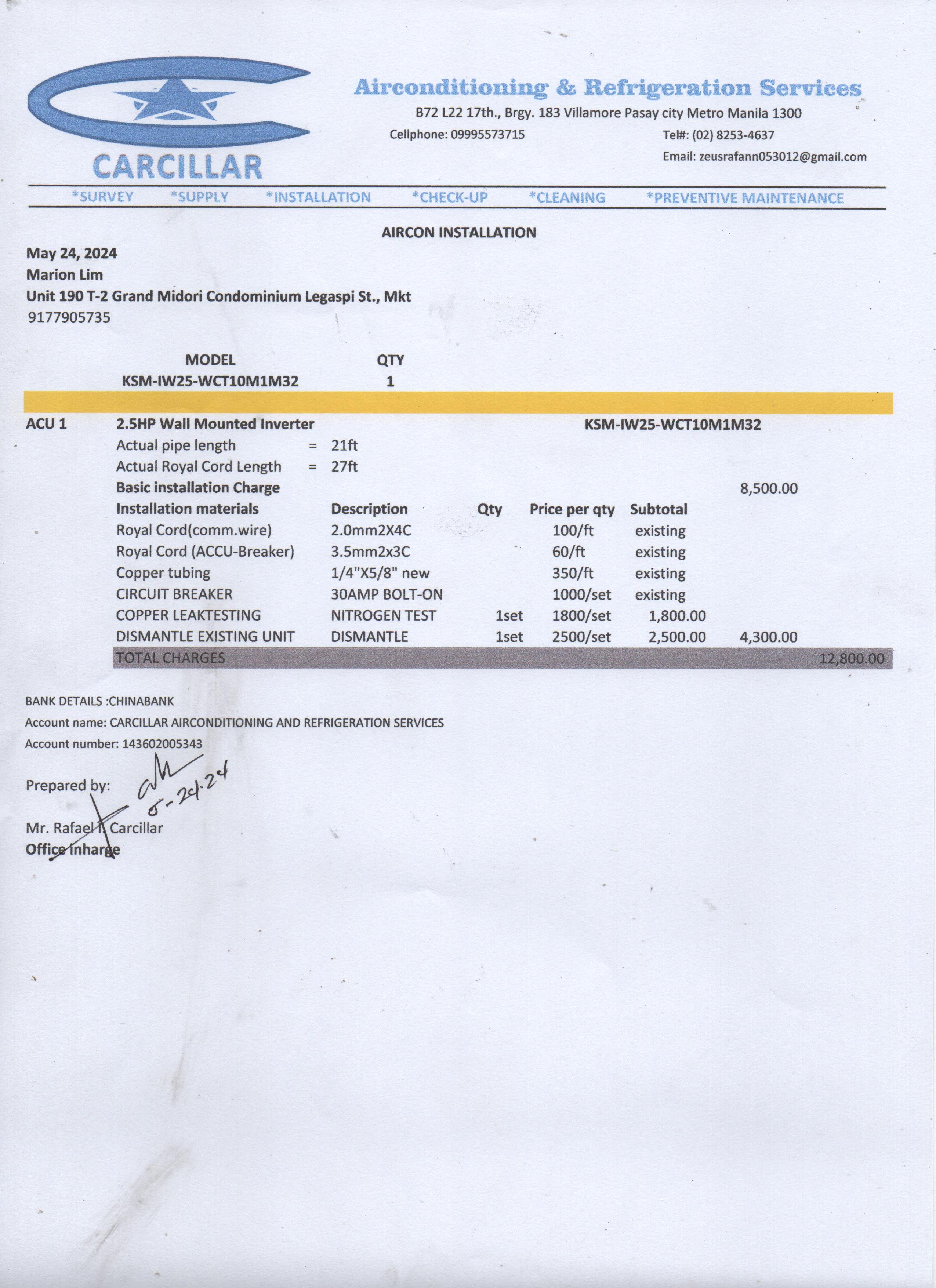 8/5/2025 9:01 AM 185358 Revised P.Q-Paiso, Jet -HO-00267075 Installation of AC.pdf